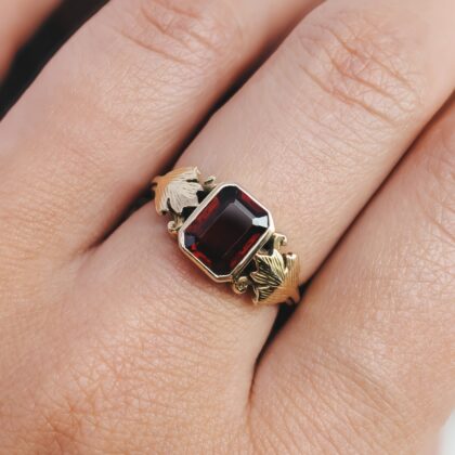Vintage 9ct Yellow Gold Garnet Ring Size O #68504