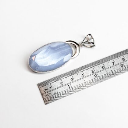 Sterling Silver Banded Agate Pendant Blue Grey #69012