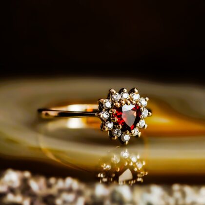 9ct Yellow Gold Garnet and Cubic Zirconia Ring Size Q #68331