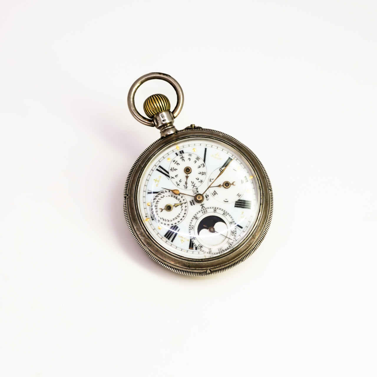 Antique Chinese Market 8-Day Moonphase Pocket Watch – Serviced – Silver 49mm #67700