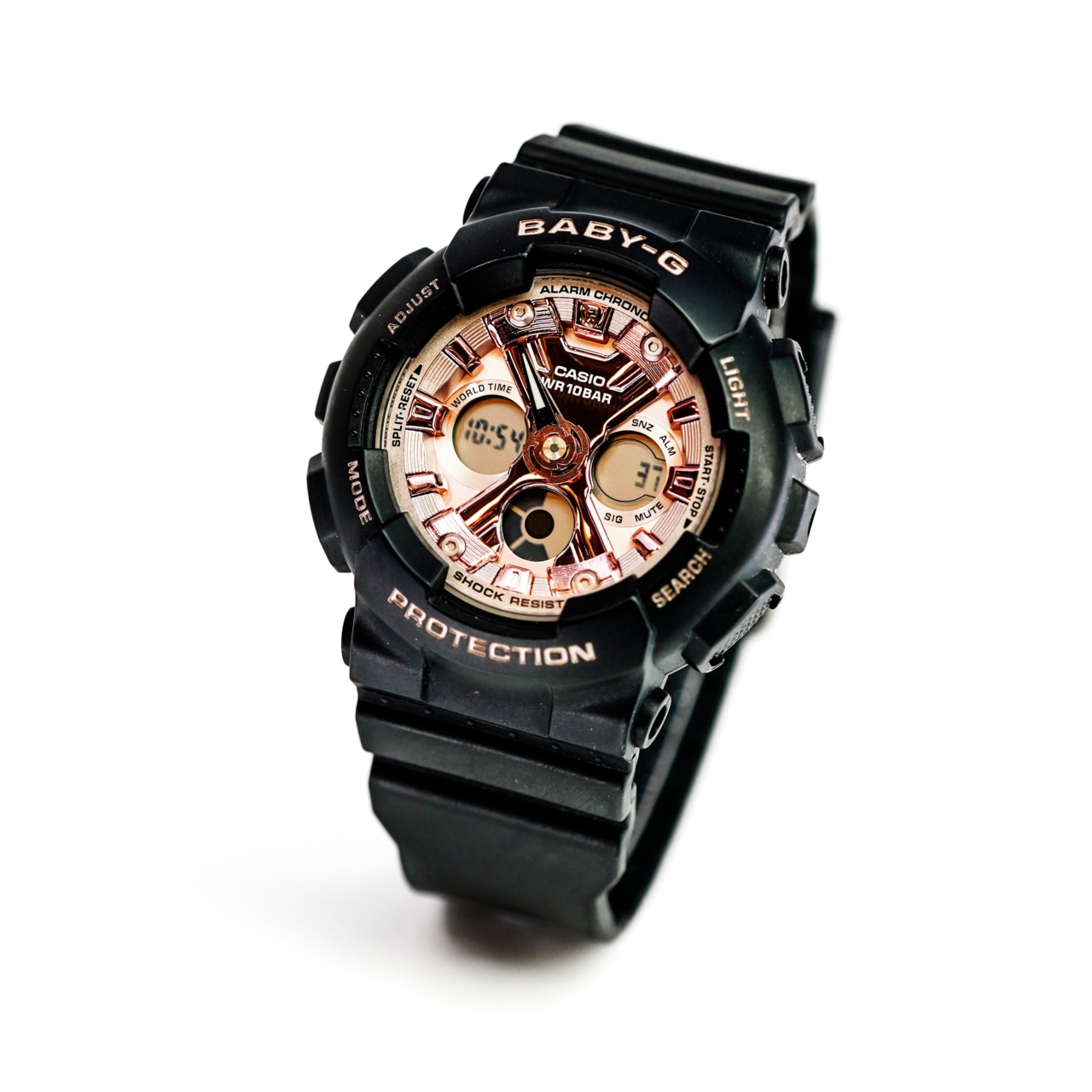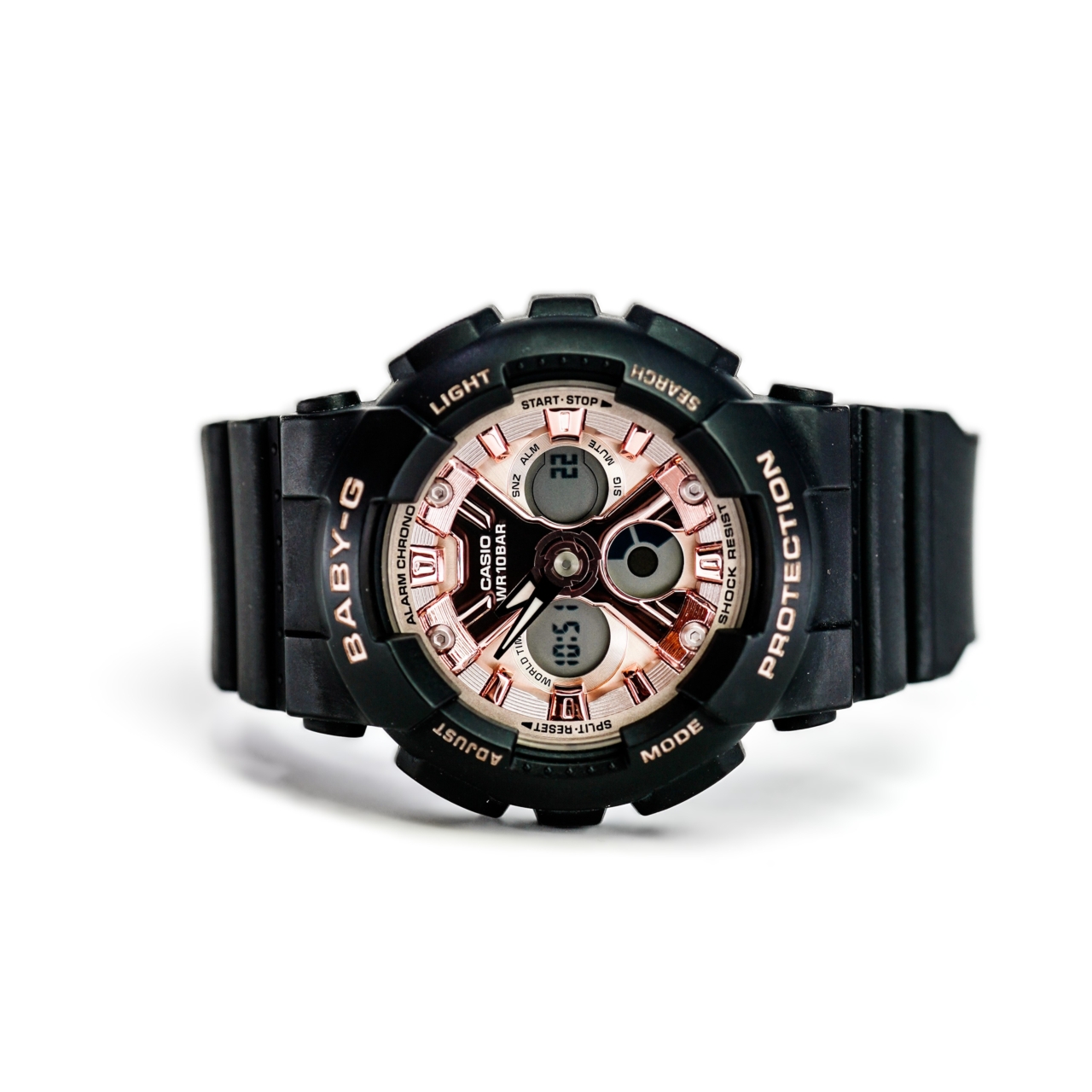 A bold and practical Baby G from Casio, featuring the popular black and rose gold colour combination. This pre loved watch blends sporty durability with a fashionable edge, making it ideal for everyday wear.