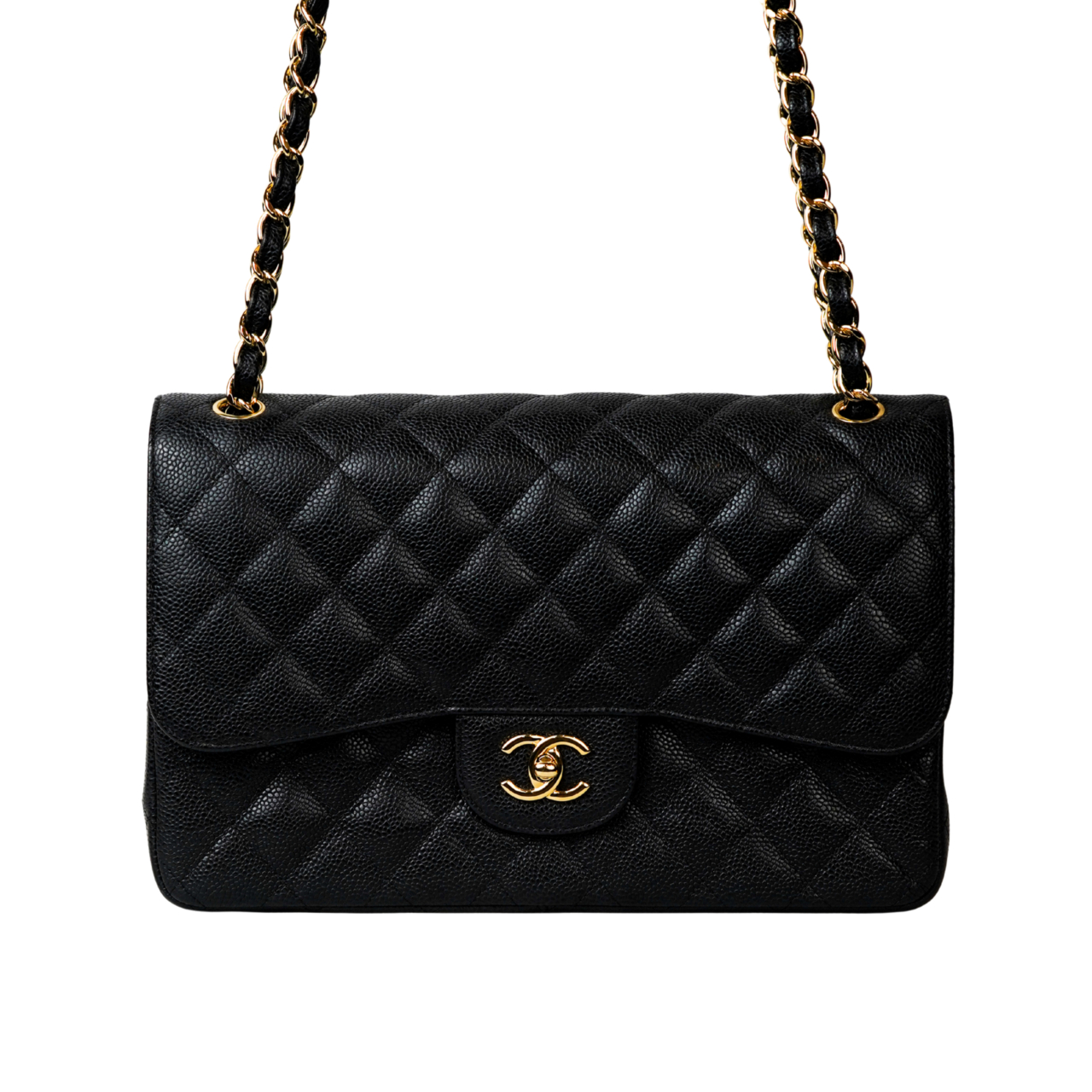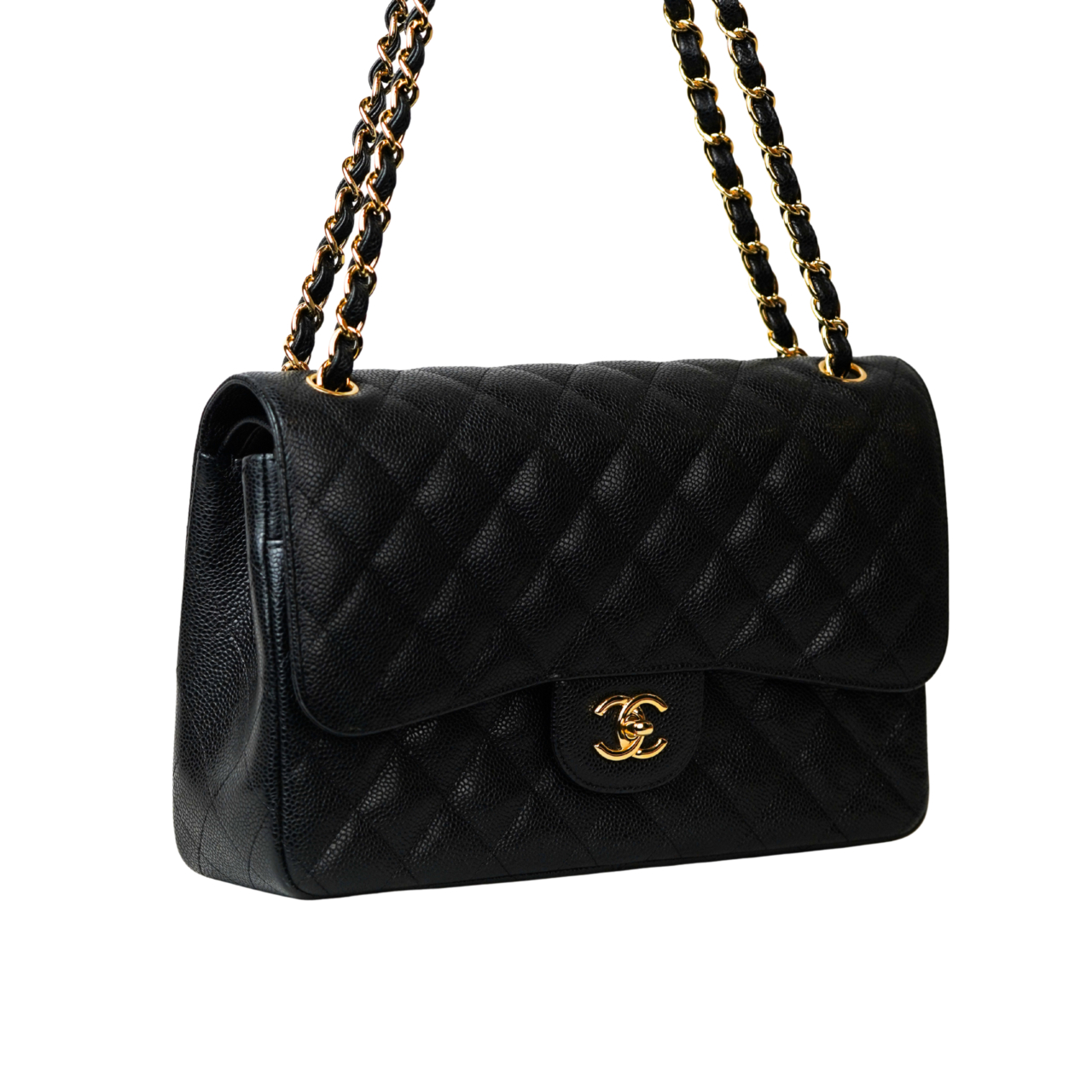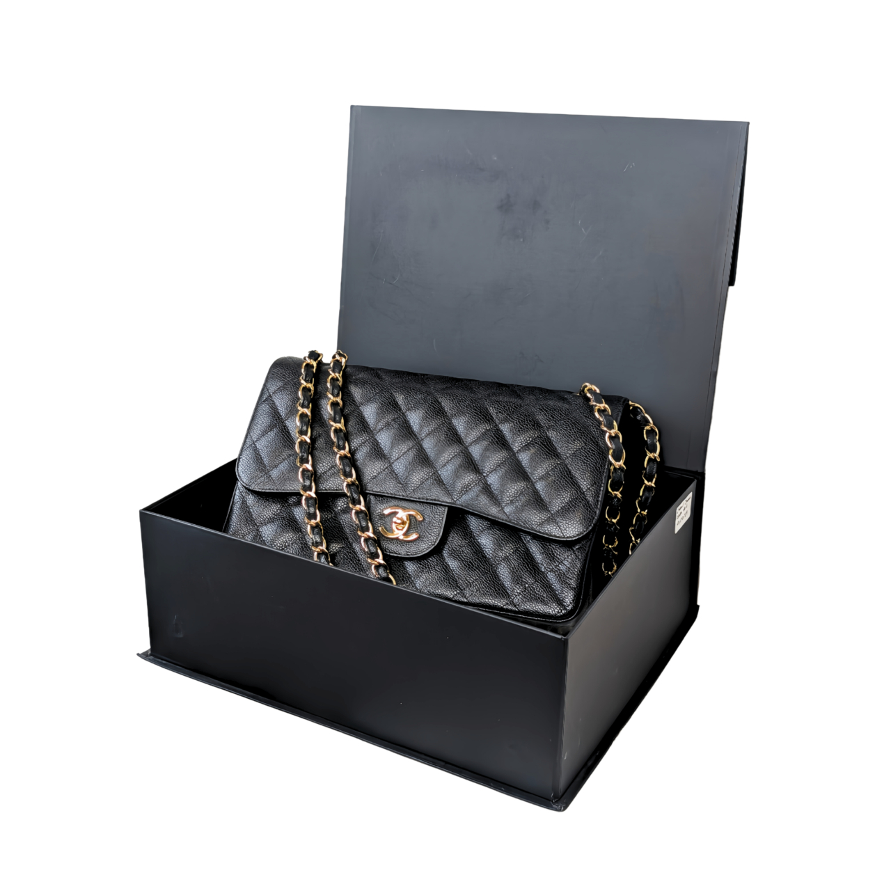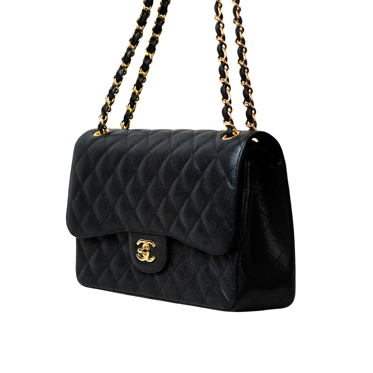 An icon for good reason, the Classic Double Flap Jumbo is one of Chanel’s most enduring designs. Crafted in black caviar leather with gold tone hardware, this piece balances everyday practicality with unmistakable Parisian elegance. The jumbo size offers generous space while maintaining the timeless silhouette collectors love.