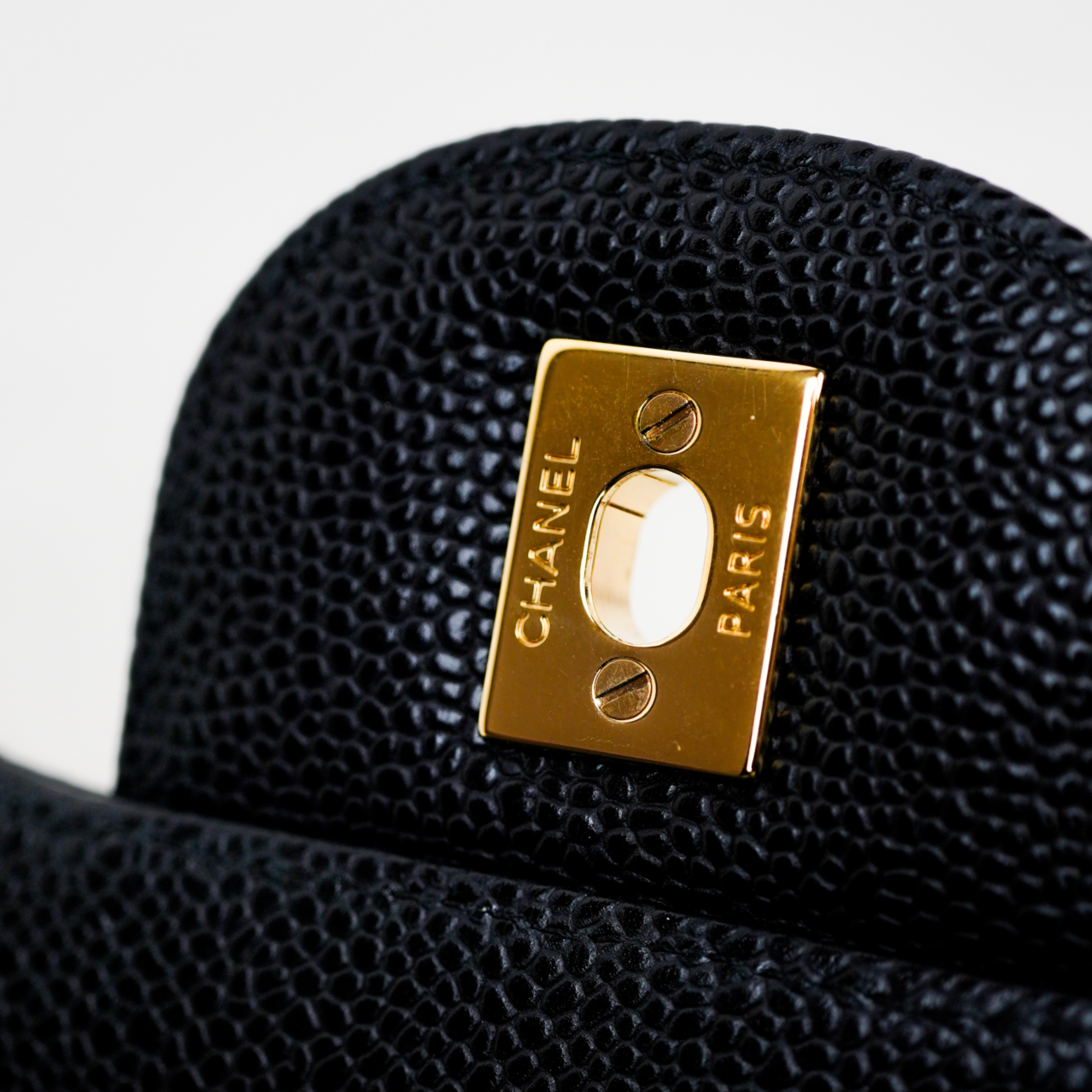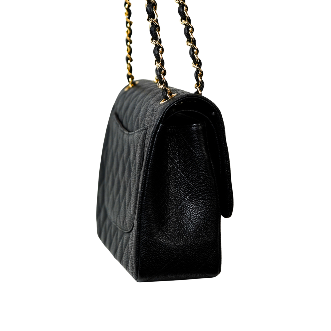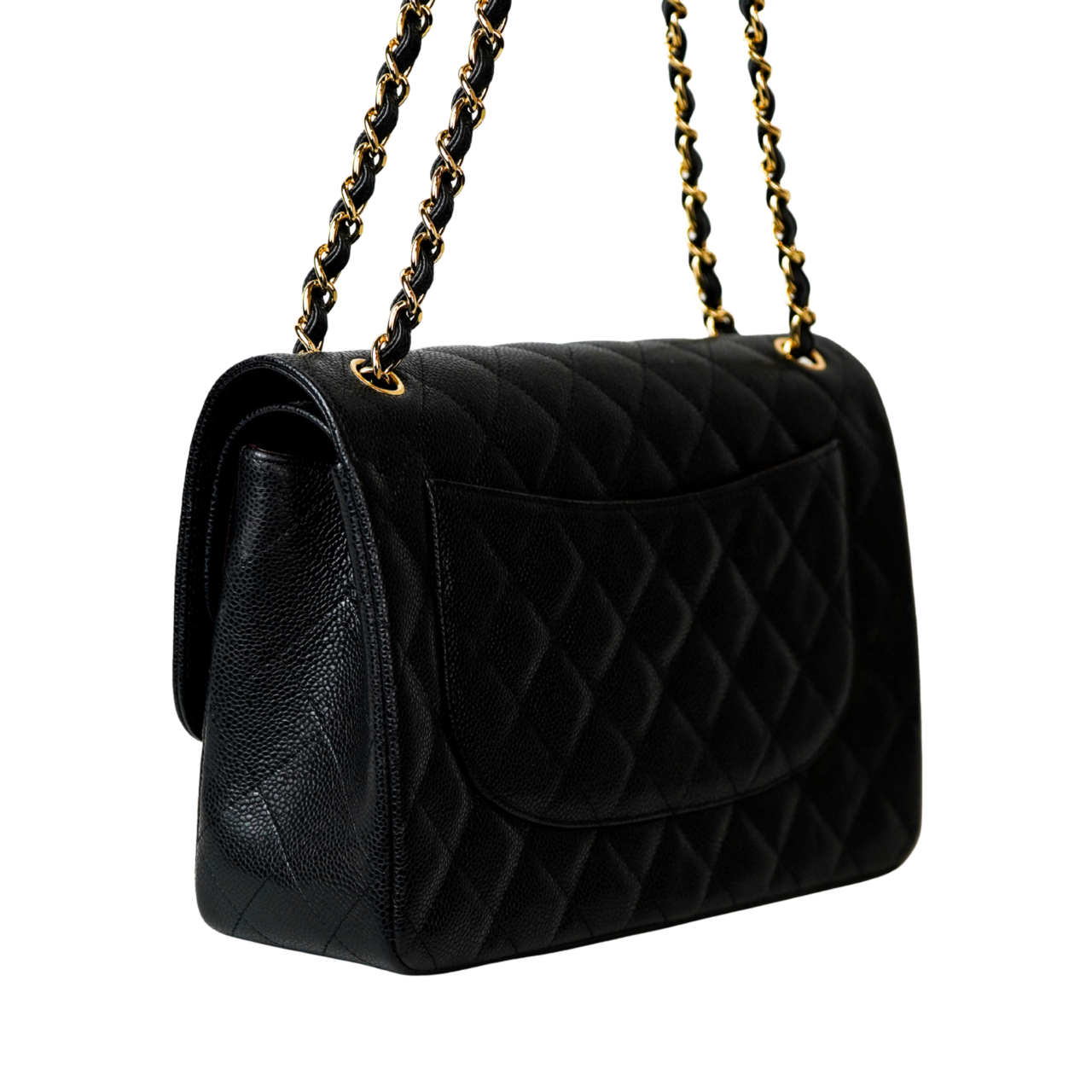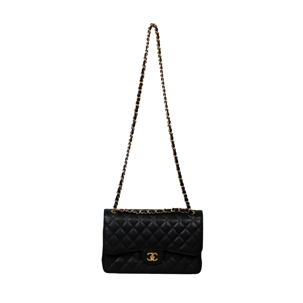 An icon for good reason, the Classic Double Flap Jumbo is one of Chanel’s most enduring designs. Crafted in black caviar leather with gold tone hardware, this piece balances everyday practicality with unmistakable Parisian elegance. The jumbo size offers generous space while maintaining the timeless silhouette collectors love.