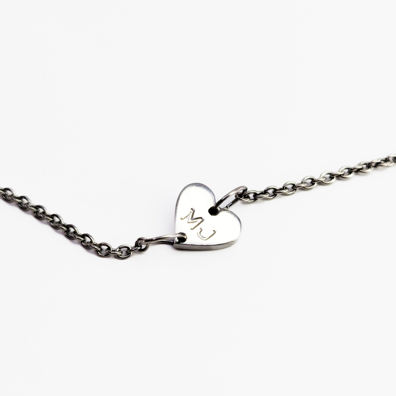 Logo Detail: “MJ” heart charm on chain