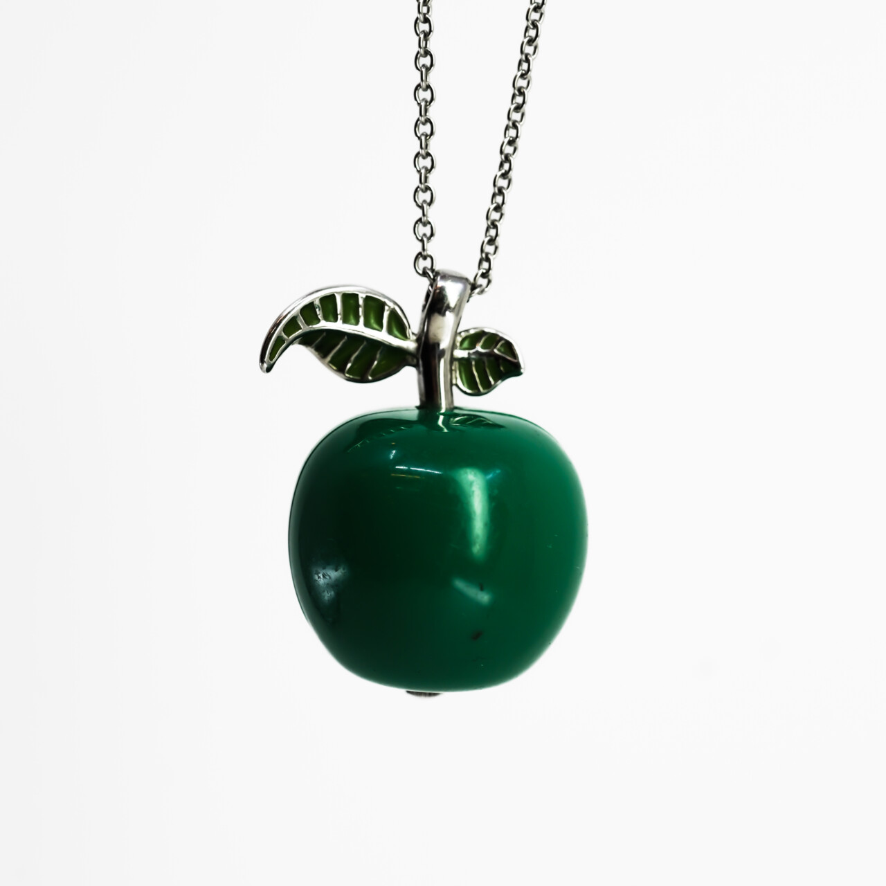 Design: Green apple with silver-tone enamelled leaves