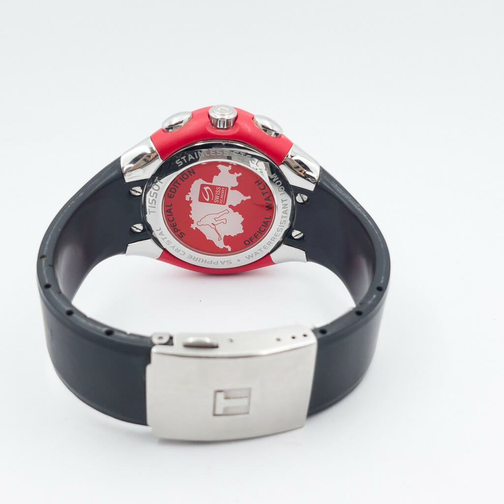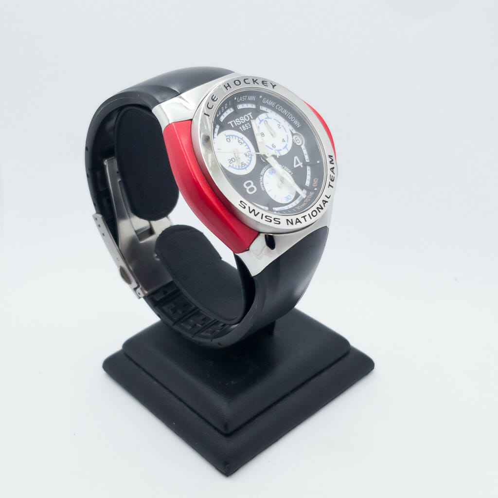 This Tissot special edition watch was released in honour of the Swiss National Ice Hockey team and has sports inspired features. The collectable watch is pre-loved and does have some wear to the bezel and case as shown in the photos so please check them carefully. It would make a nice addition to any Ice Hockey fans collection.