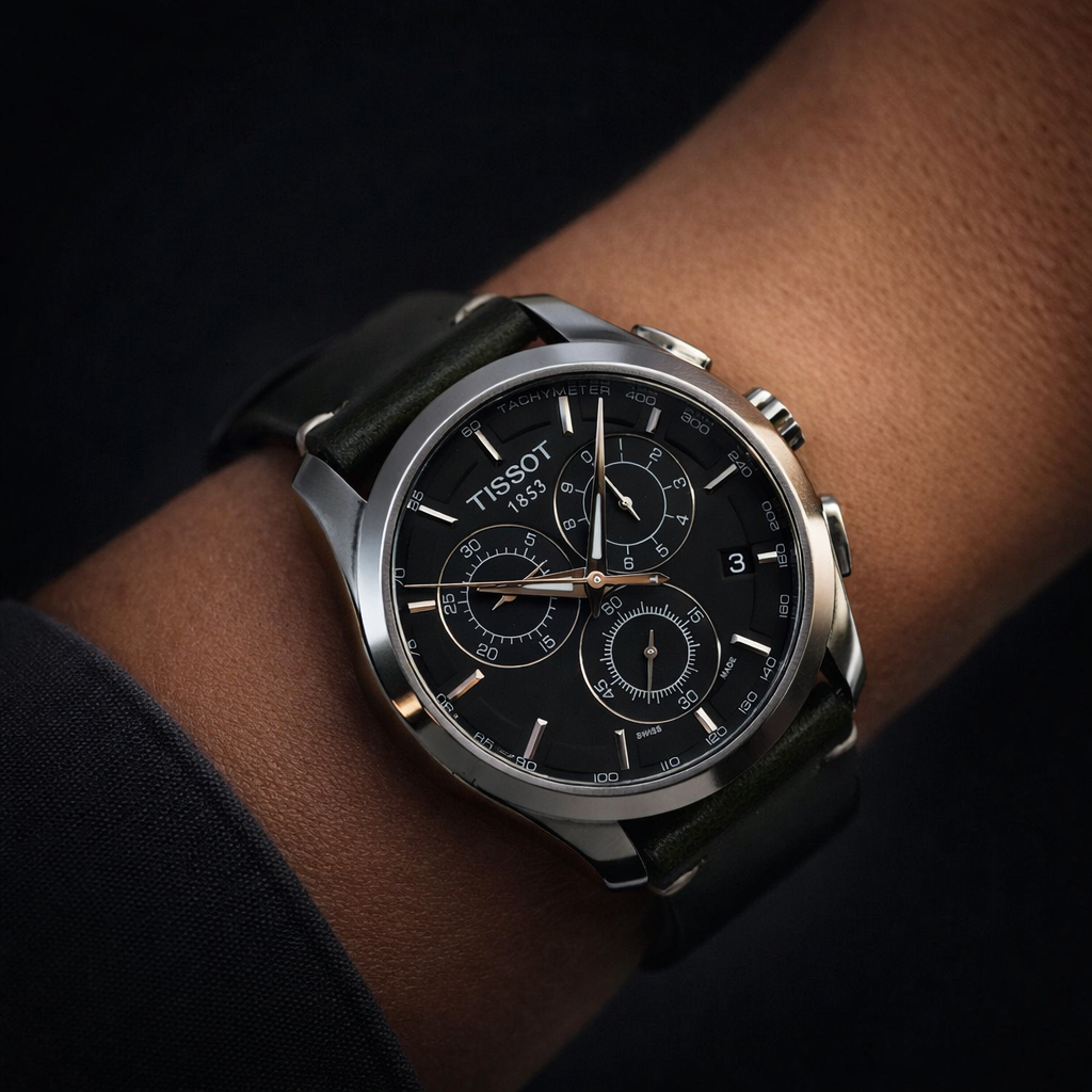 A sharp, versatile chronograph that offers everyday practicality with a touch of classic Tissot styling.