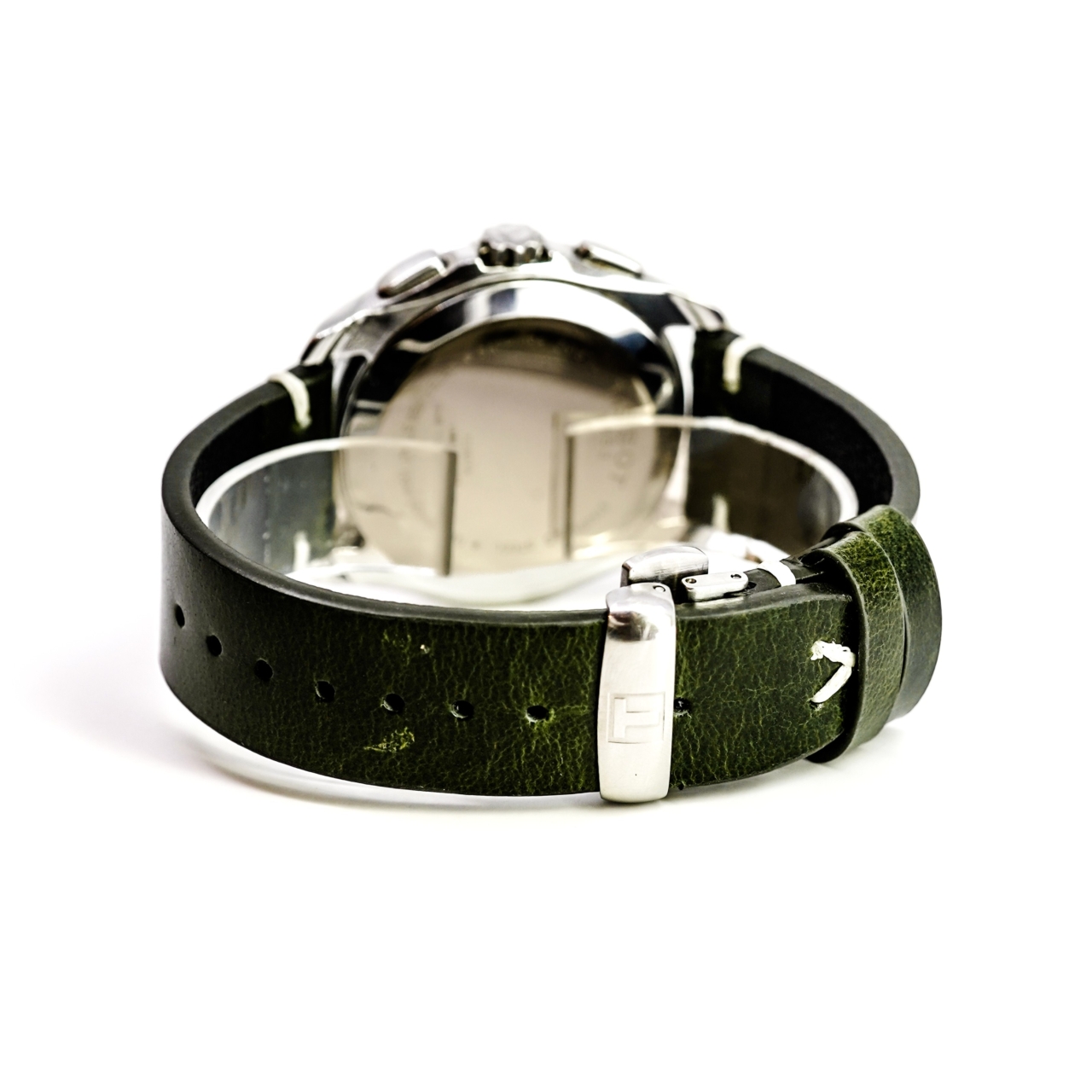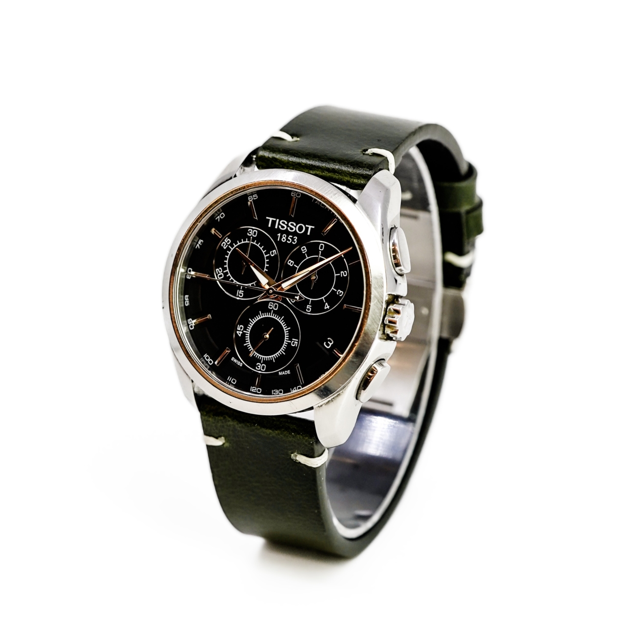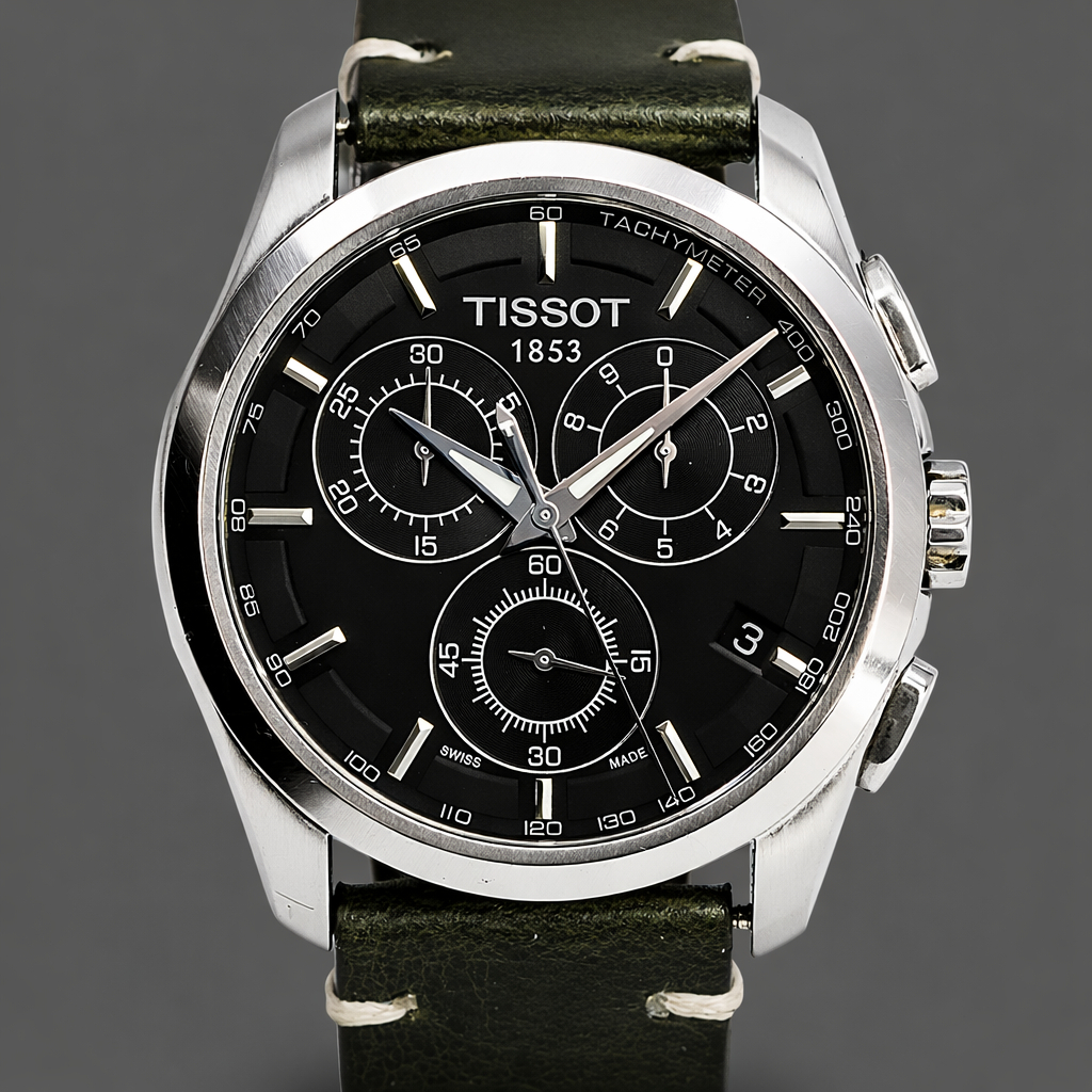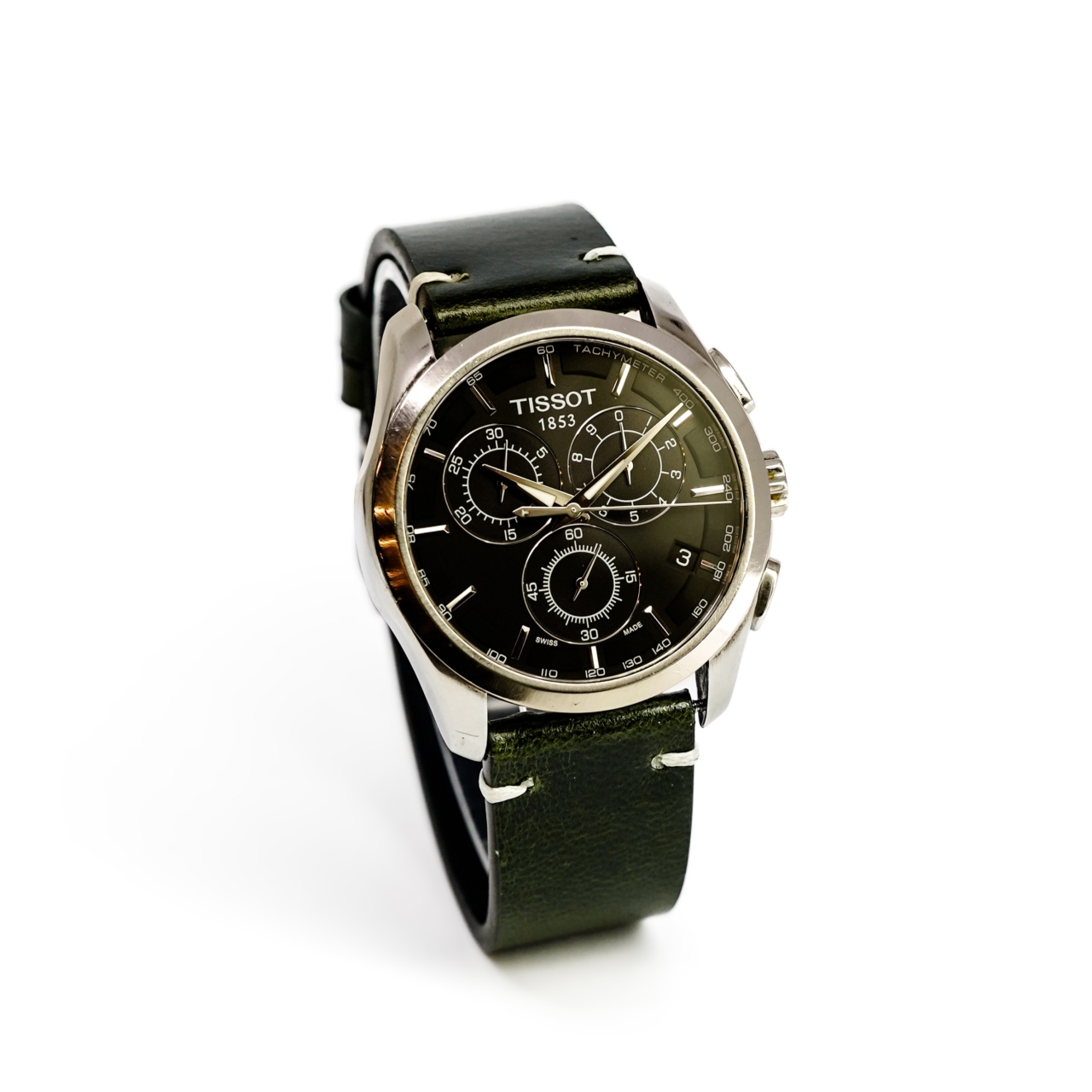 Powered by a reliable quartz movement, this piece delivers accurate timekeeping with practical chronograph functionality. Fitted with a brand new generic leather strap and finished with the original Tissot clasp, it’s ready to wear straight away.