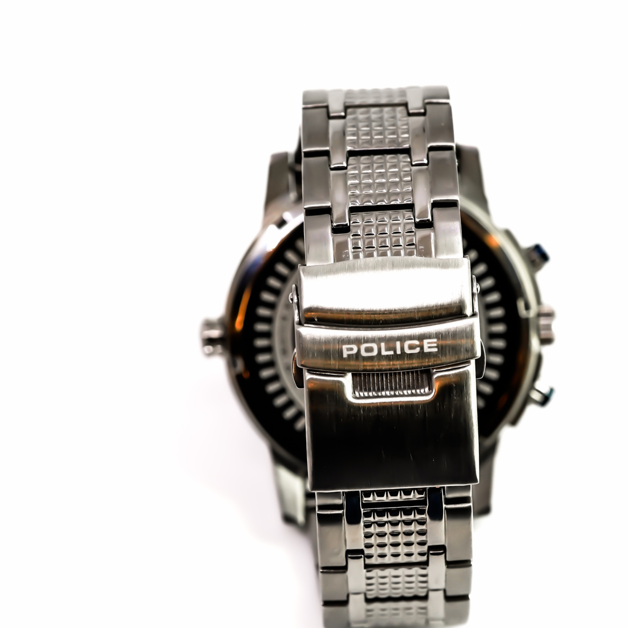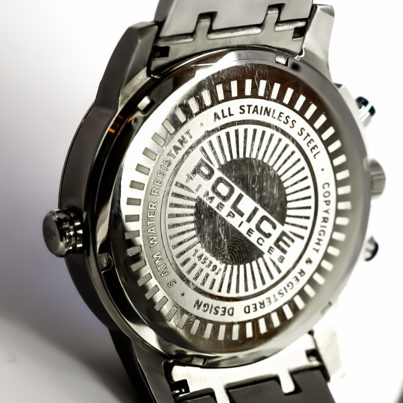 Case Back: All stainless steel, Police Timepieces engraving