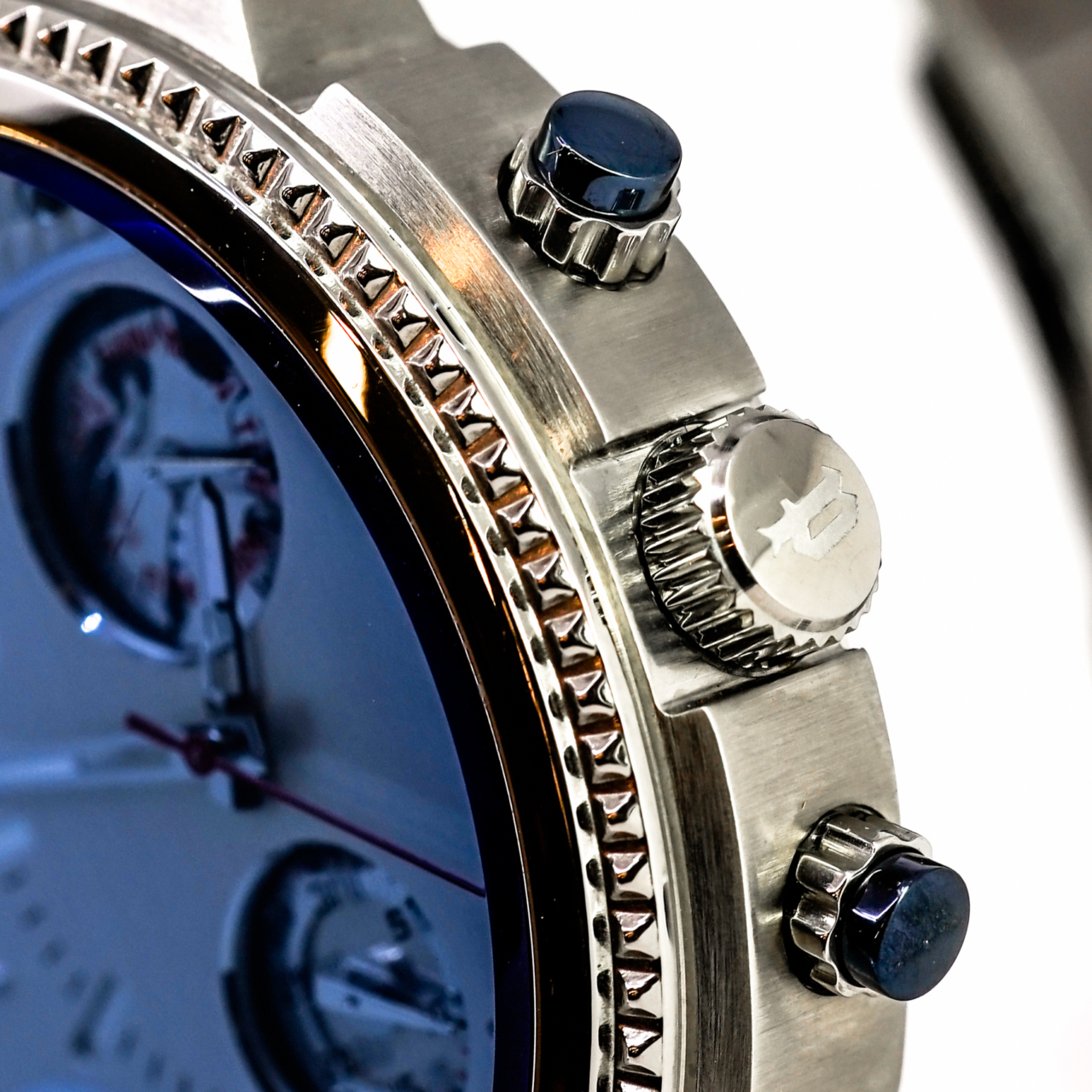 Dial: Ice blue multi layer dial with textured detailing